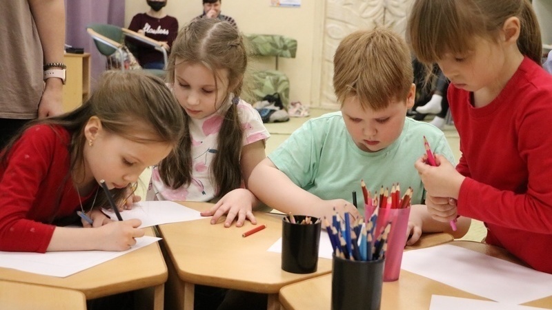По традиции в конце урока Михаил из таинственной шкатулки достал сюрприз – механическую игрушку и предложил пофантазировать с помощью бумаги и цветных карандашей. Ребятам нужно было нарисовать театр будущего. У всех получились яркие, выразительные рисунки.