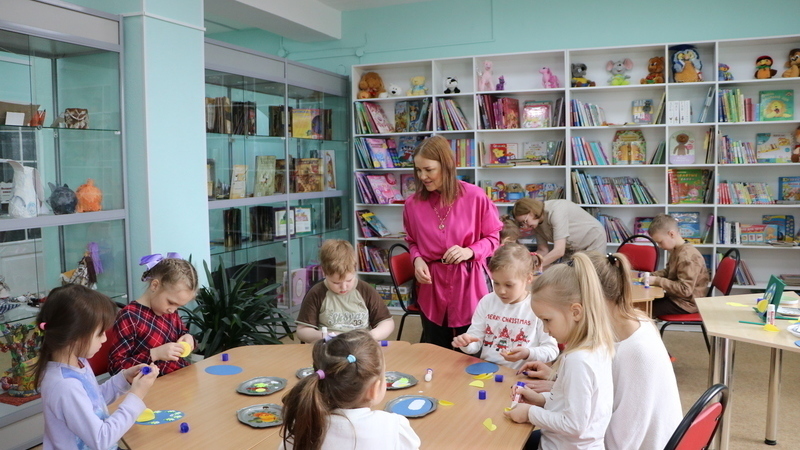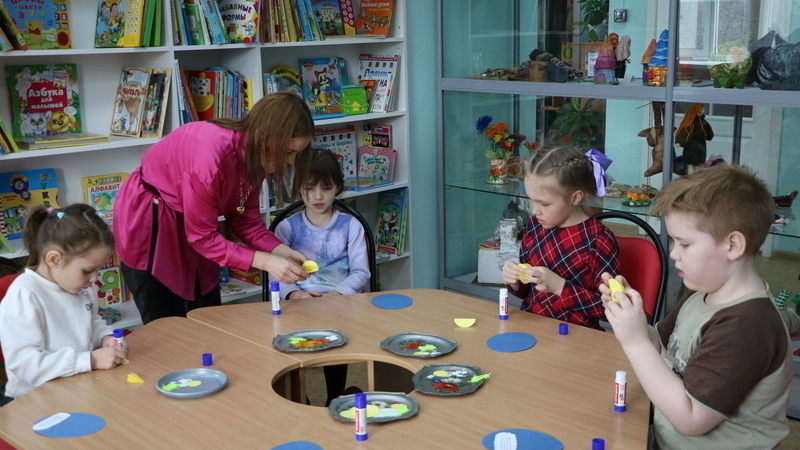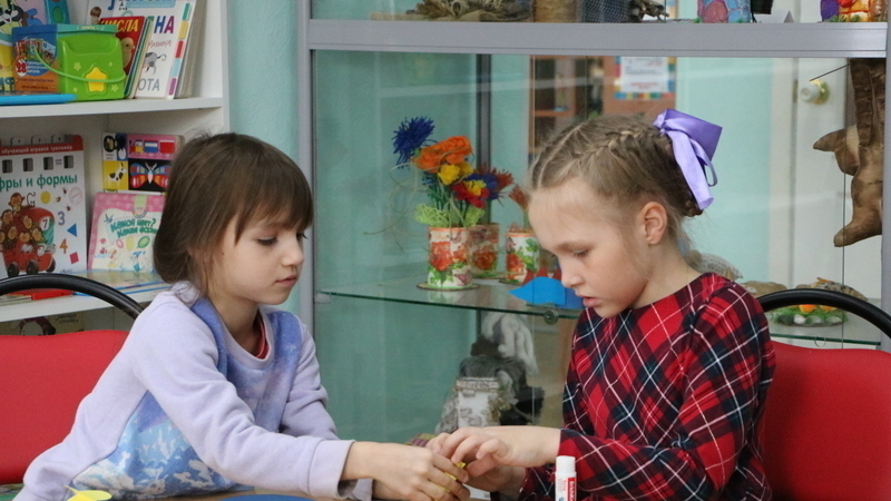 Затем юные читатели учились мастерить поздравительную открытку в виде пасхального яйца с цыпленком в центре. В читальном зале царила атмосфера радости и светлого настроения. Ребята очень старались, работали аккуратно, и в результате у всех получились очень красивые, яркие открытки, которые они подарят родным и близким.