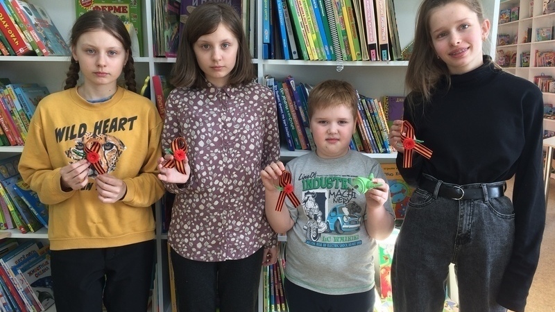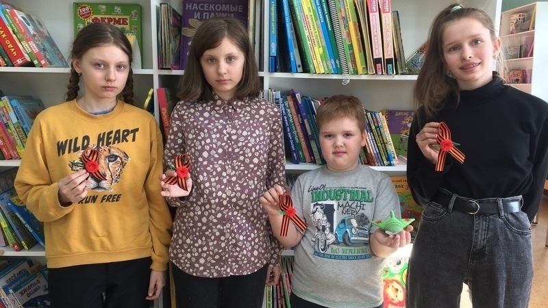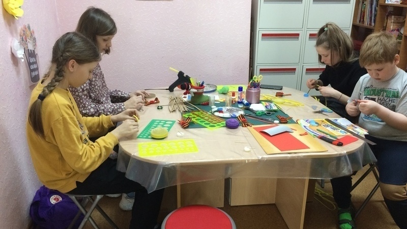 Юные рукодельники при помощи узеньких цветных бумажных полосок, клея и ножниц смастерили красивые красные цветы в технике квиллинг, которыми они украсили георгиевские ленточки. Во время мероприятия дети вспоминали, кто из старших родственников – прадедушек и прабабушек – участвовал в Великой Отечественной войне. В результате кропотливой и аккуратной работы у всех рукодельников получились красивые георгиевские ленточки, которые украсят их одежду на параде Победы.