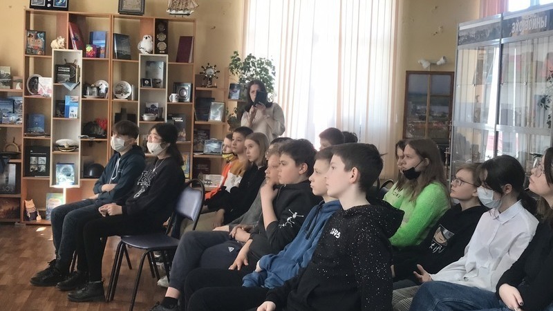 С помощью презентации ребята узнали о боевых действиях на территории Мурманской области в военные годы, о героях, сражавшихся на Кольской земле. Шестиклассникам рассказали о Магомете Гаджиеве, Василии Кислякове и Викторе Леонове. Имя дважды героя Советского Союза Бориса Сафонова оказалось школьникам хорошо известно, так как ребята ранее знакомились с личностью этого легендарного летчика.