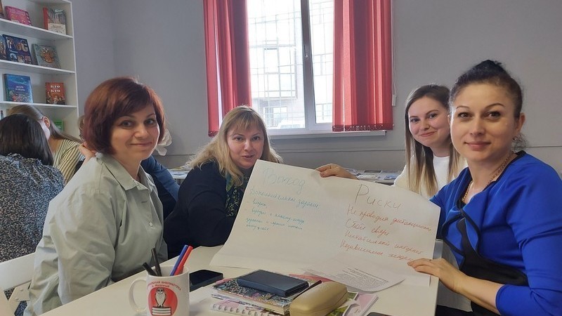 «Вы – сотрудник отдела библиотеки, придумали и подготовили интересное мероприятие по популярнейшей книжной Вселенной для неорганизованных посетителей библиотеки. Были заготовлены задания, активности на разных площадках библиотеки, организованы помощники, продуманы призы, мероприятие анонсировано на сайте библиотеки. В день проведения мероприятия вы столкнулись с трудностями – желающих посетить ваше мероприятие оказалось так много, что отдел с трудом их вместил, а вы как организатор были нарасхват и не успевали за всем следить и проводить все, что было задумано. Участникам приходилось ждать, были недовольные». За 10 минут группе нужно было найти выход из ситуации, предложить решение и расписать риски проведения подобных мероприятий. Затем следовала совместная работа – группа рассказывала свое видение ситуации, коллеги комментировали, а затем организаторы рассказывали, как они справлялись с этой задачей (все предложенные ситуации были взяты из практики).