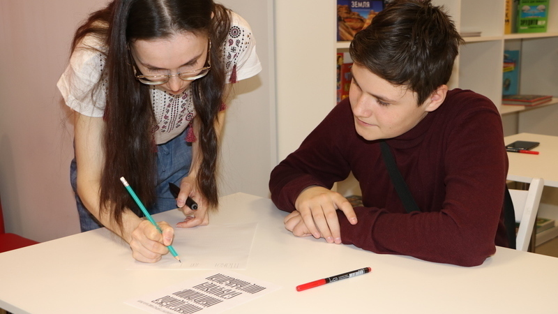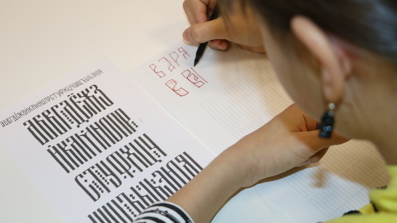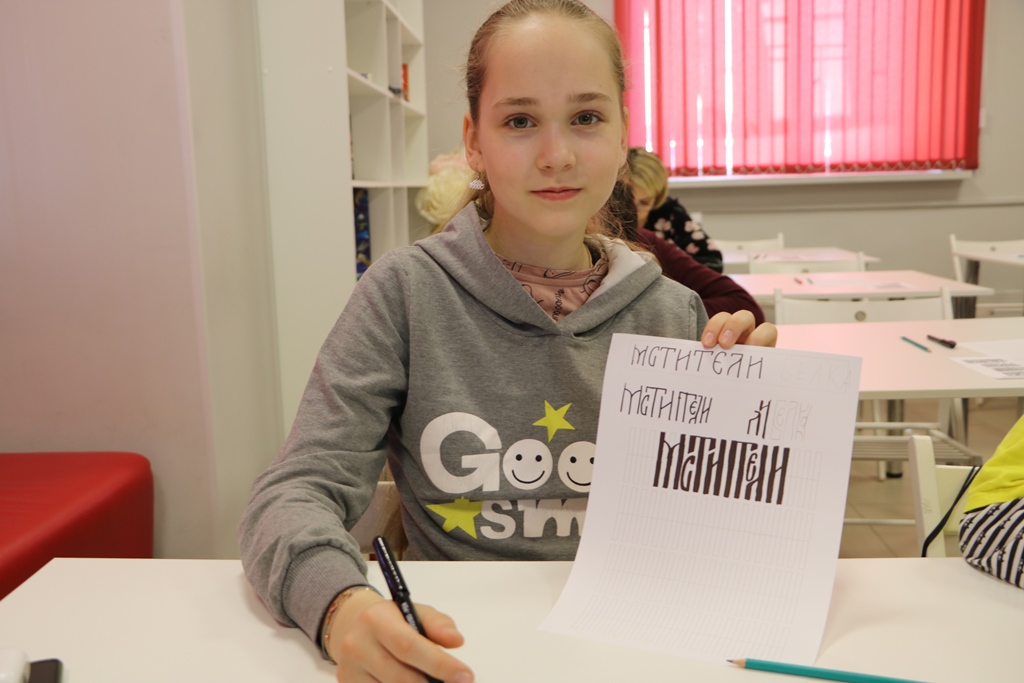 Сотрудник отдела библиотечной рекламно-издательской деятельности Костина Татьяна познакомила участников с историей славянской азбуки, рассказала о летерринге, как о модном направлении современного дизайна текста, показала особенности старославянской вязи и приемы, которые помогают создавать слова в виде замысловатого орнамента. Под ее чутким руководством все желающие смогли попробовать свои силы в искусстве красочного написания букв и слов.