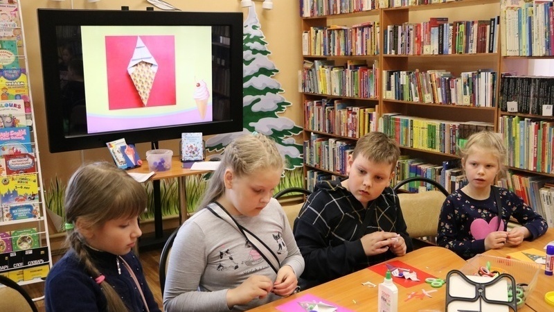 На мастер-классе дети создали рожок мороженого в технике оригами и украсили его на свой вкус паетками и разноцветным декором. В завершении встречи ребята с легкостью ответили на вопросы викторины.
