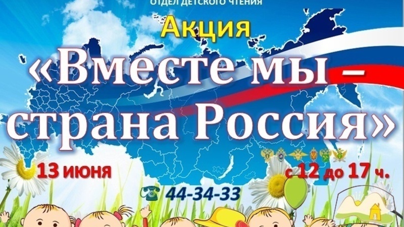 13 июня с 13:00 до 17:00 отдел детского чтения приглашает поучаствовать в акции, посвященной главному государственному празднику, который россияне отмечают 12 июня