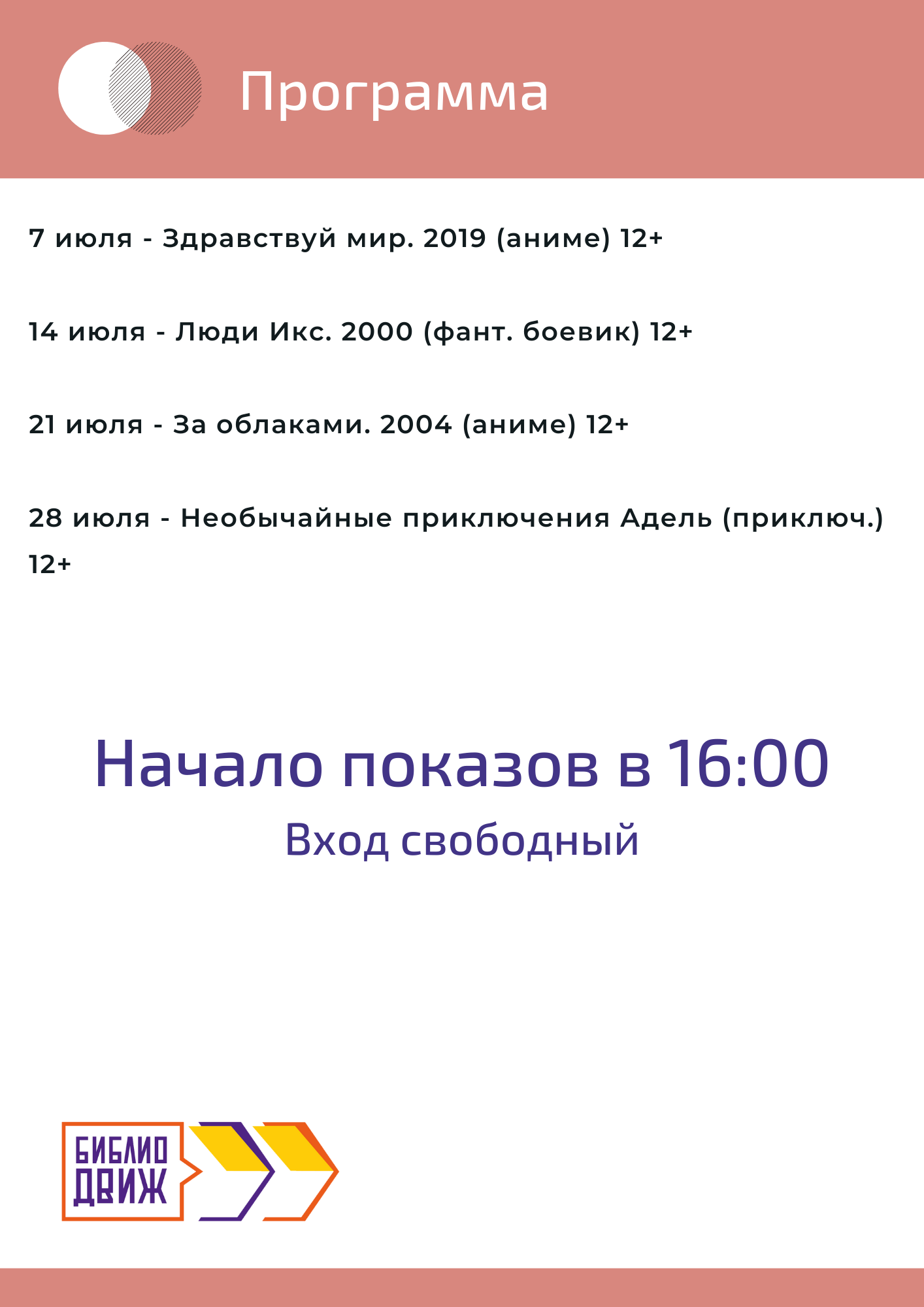 Смотрите программу на июль. Отмечайте в календаре и приходите в молодежный центр БиблиоДвиж.