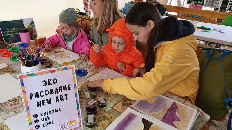 На мастер-классе по экорисованию "New art" гости из разных городов страны попробовали себя в роли художников, создавая шедевры с помощью раствора из натуральных ингредиентов. В ход пошли черника, каркаде, кофе, куркума, шпинат и даже укроп с петрушкой. У многих посетителей такие краски вызвали удивление и даже заинтересованность секретами их получения.