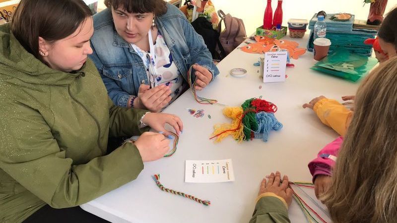Желающих что-то смастерить своими руками библиотекари приглашали на мастер-класс по изготовлению саамской закладки. Плетение закладки оказалось интересным не только детям, но и взрослым. Во время занятия библиотекарь рассказывала гостям фестиваля о коренных жителях Кольского Севера – саамах. Участники узнали, что означает каждый цвет, используемый в изделии, и почему в украшениях и одежде саамов нет черного цвета.