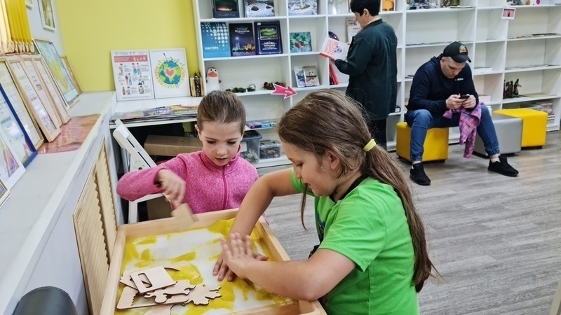 Ребята заинтересовались песочной терапией, антистресс-раскрасками и спилс-картами России и Мурманской области.