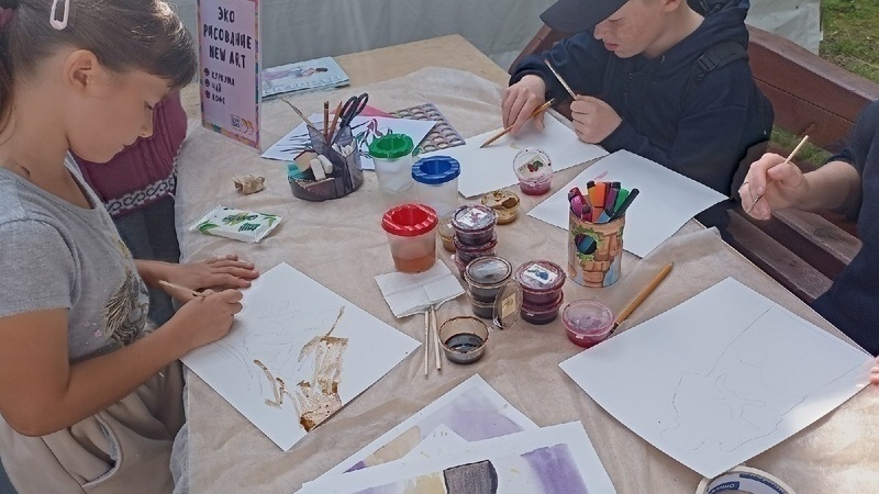 Любители настольных игр сражались в карточных боях, спасали острова от затопления и вели нешуточные бои на полях сражений. А юные художники пробовали свои силы в экорисовании. Это был интересный опыт и каждый талант, конечно, забирал созданный с помощью природных красок, шедевр.