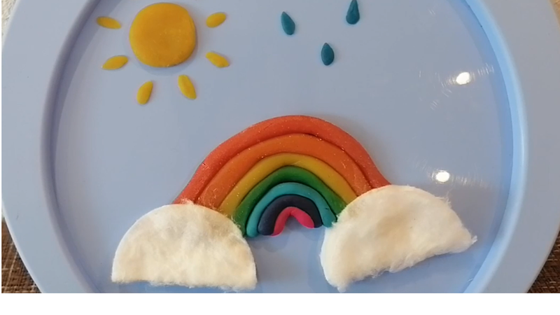Всего за несколько минут вы сделаете из пластилина свою собственную яркую радугу, которая будет радовать вас при любой погоде, а ещё подарите ей друзей – облачка, солнце и дождик, чтобы она не скучала. Вот так, занимаясь творчеством, вы сами не заметите, как запомните несколько слов по-английски, а также простые разговорные фразы.