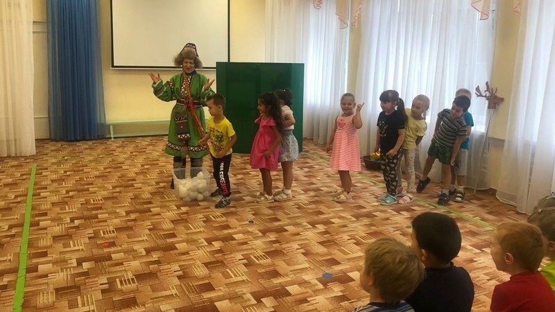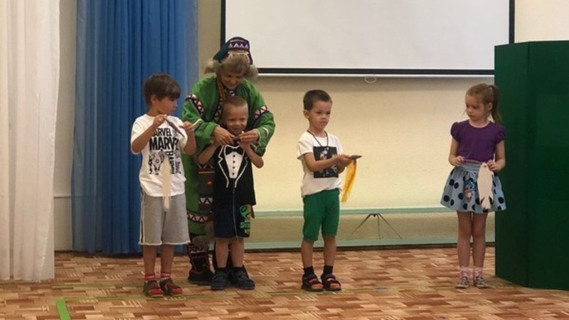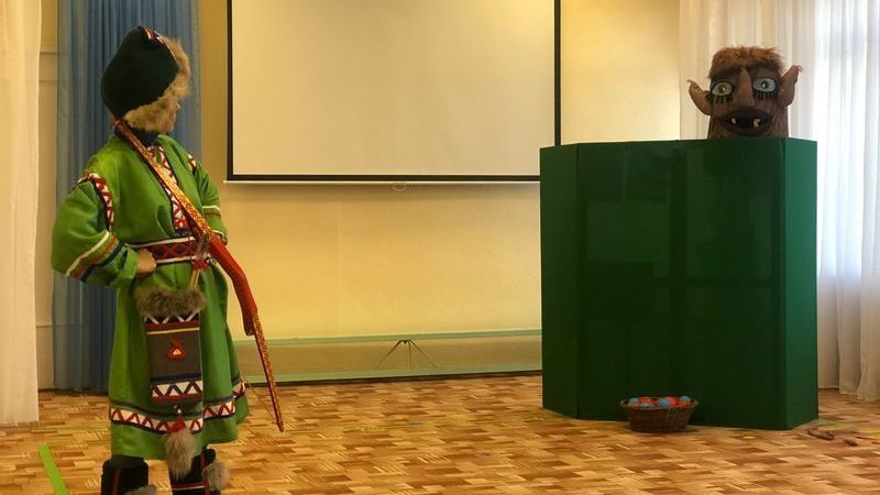 В начале мероприятия библиотекарь прочитала самые интересные эпизоды из книги знаменитого финского сказочника. А после перед ребятами развернулось настоящее театрализованное представление, главными героями которого стали Сампо-Лопаренок и театральная кукла-маска великана Хийси. Вместе с озорным и смелым Сампо мальчишки и девчонки выполняли задания злого великана: искали и собирали северные ягоды, ловили рыбу, наперегонки катались на оленях, танцевали.
