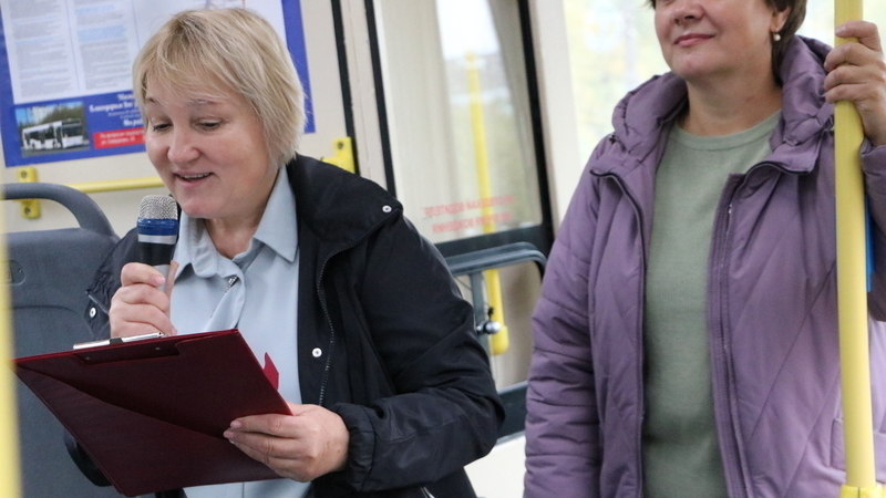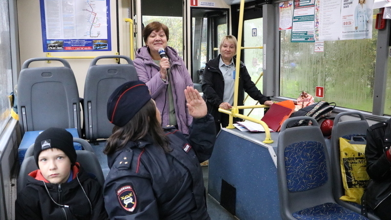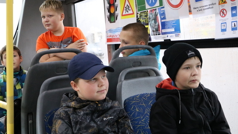 Несмотря на проливной дождь за окном, в троллейбусе царила теплая и дружелюбная атмосфера. Ребята с большим удовольствием слушали сотрудников библиотеки и инспектора ГИБДД.