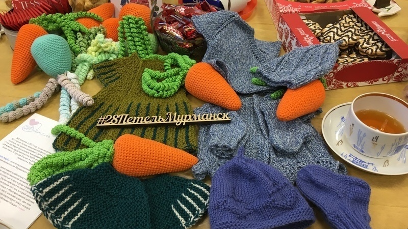 Клуб вяжет и безвозмездно передает в Мурманский перинатальный центр шерстяные носочки, шапочки и жилетки для малышей-торопыжек, так ласково называют деток, родившихся раньше срока. Таким малышам особенно нужно тепло, сохранять которое помогают подаренные волонтерами одежки.