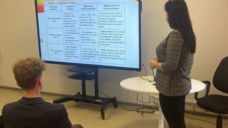 В форме тренинга специалисты Центра психолого-педагогической, медицинской и социальной помощи Малышева Ирина Сергеевна и Елсакова Мария Игоревна рассказали аудитории, как правильно реагировать в случае столкновения с интернет-травлей, и научили пользоваться разными способами, чтобы сказать «нет».