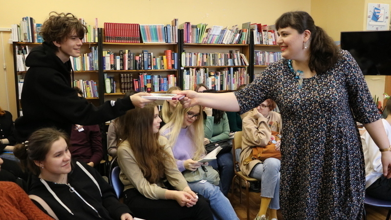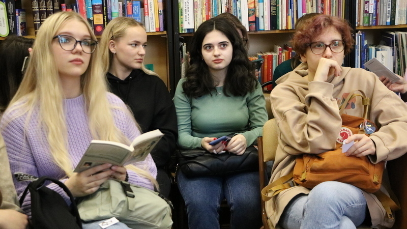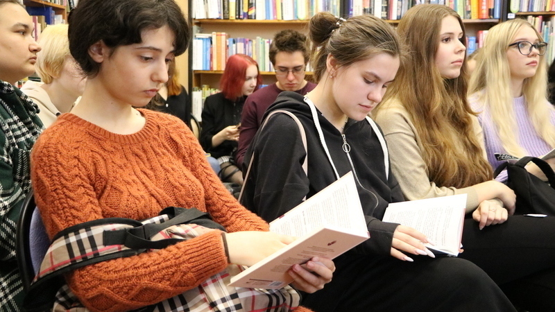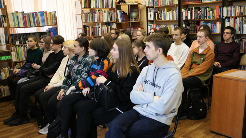 Бывшие школьники, а теперь студенты-лингвисты переступили порог библиотеки, многие впервые. Цель встречи была познакомить ребят с фондом.