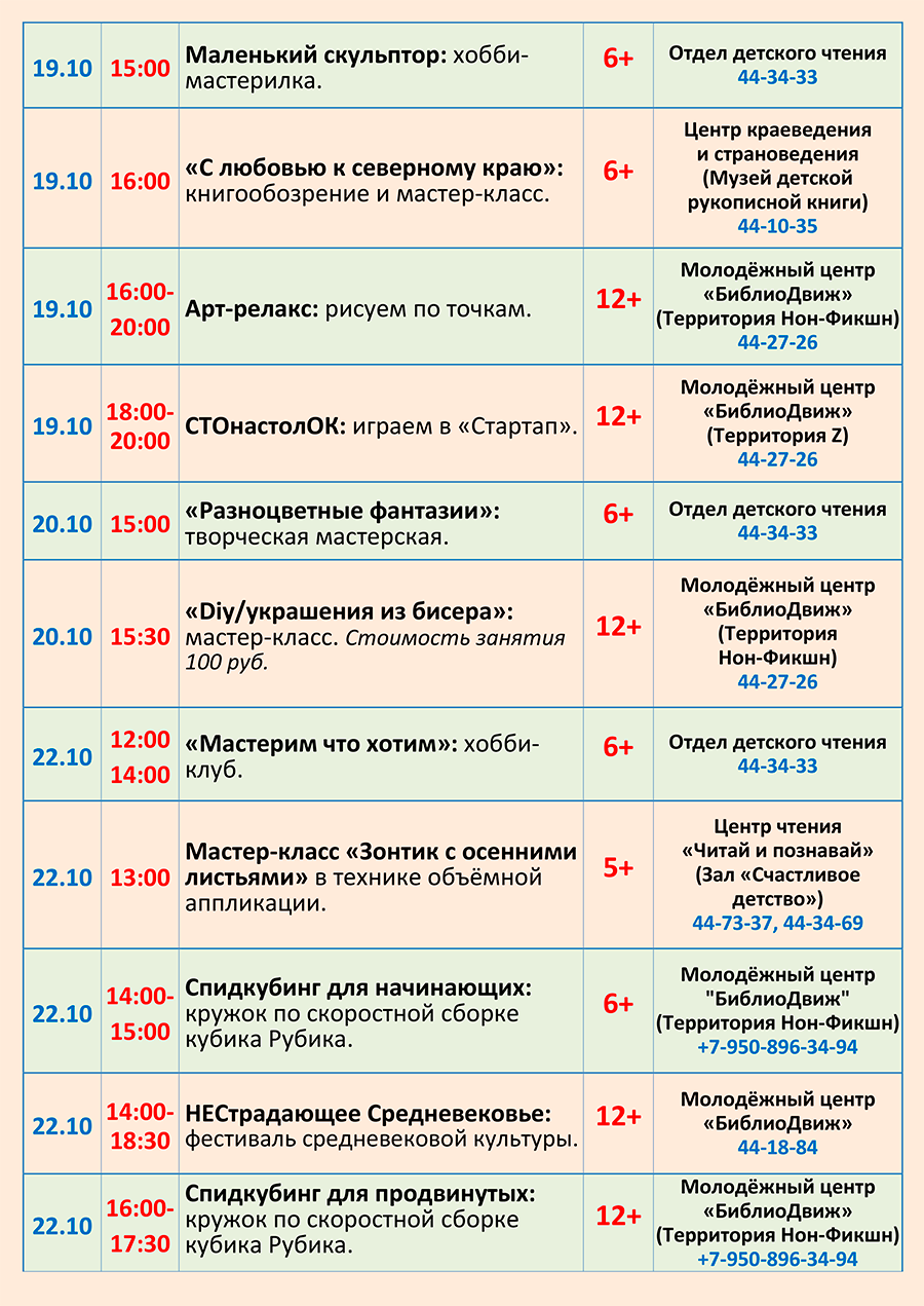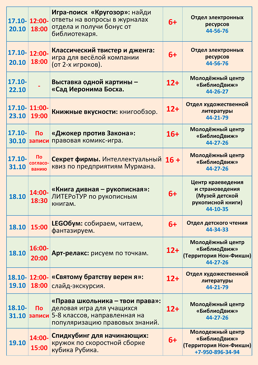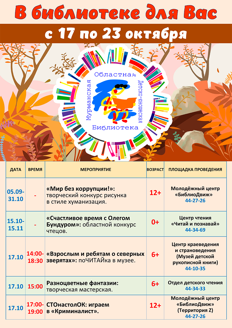 Уважаемые посетители, знакомьтесь с программой мероприятий, которые пройдут в библиотеке с 26 сентября по 02 октября