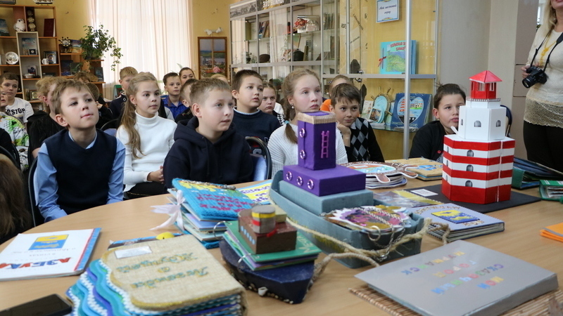 Продолжилась беседа в Музее детской рукописной книги, Юлия Александровна Яшина показала ребятам книги номинации «Мой мачтовый город». Талант и безграничная фантазия участников международного конкурса поразила пятиклассников, ребята с восторгом и интересом рассматривали и листали издания.