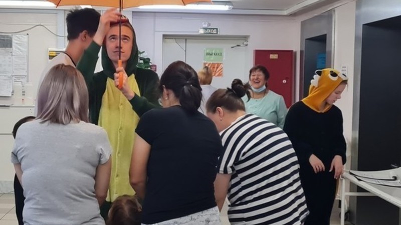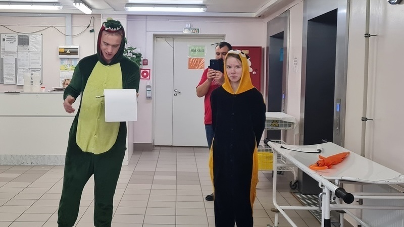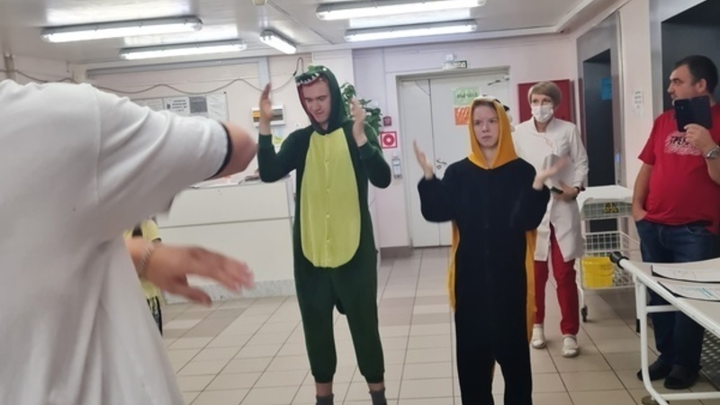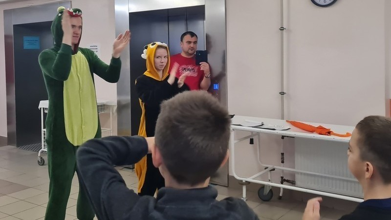 В гости к юным пациентам пришли их любимые персонажи: яркий динозаврик и озорная красная панда. Они предложили отправиться в страну, где царят игры и беззаботное веселье «Смехоландия».