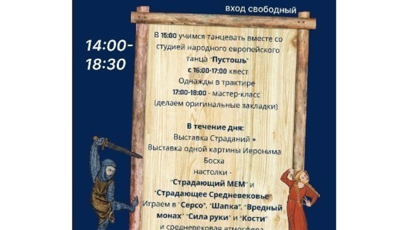 Фестиваль посвящен культуре европейского средневековья. В программе мастер-классы, оригинальные настольные игры, квест «Однажды в трактире» и подвижные игры эпохи, в которые сможет поиграть каждый.