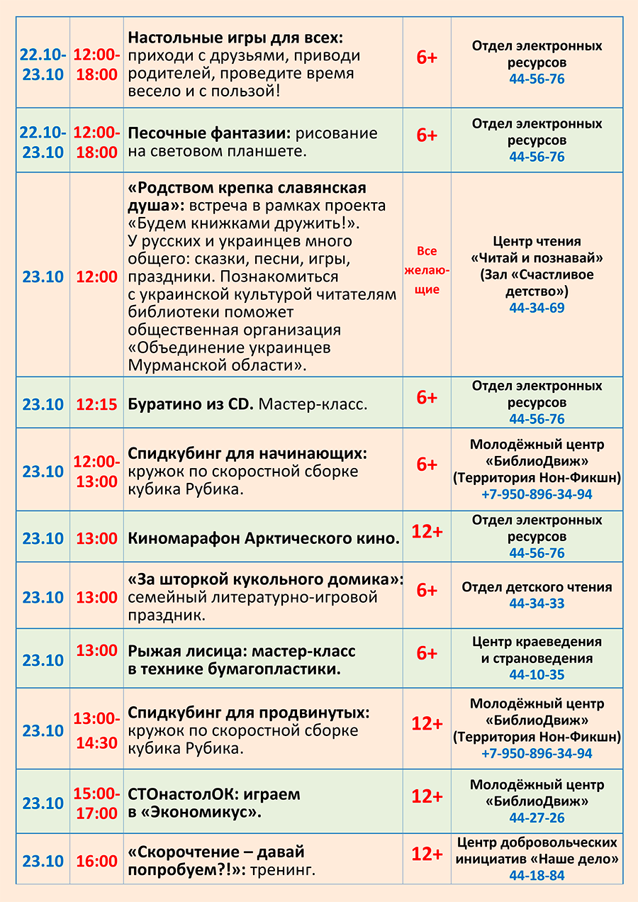 Уважаемые посетители, знакомьтесь с программой мероприятий, которые пройдут в библиотеке с 17 по 23 октября