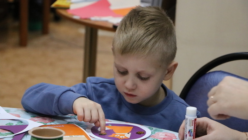 На занятии дети из цветной бумаги и картона сделали яркую осеннюю аппликацию в виде лисички. У ребят она получилась очень милая: рыжая, с пушистым хвостом, острыми ушками и в окружении осенней листвы. Отличный подарок друзьям и родителям в ненастный осенний денек!