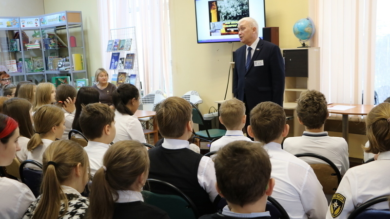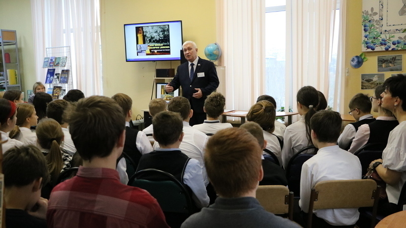 На встречу с ребятами из школ № 53, № 4 и гимназии № 5 пришел Михаил Викторович Белошеев, депутат Мурманской областной Думы, координатор акции «Бессмертный полк». Он рассказал юным мурманчанам о формировании Полярной дивизии народного ополчения, о бестрашном подвиге солдат, которые с победой дошли до Дании, освободив Польшу. Юные патриоты узнали, почему немецкие солдаты называли ополченцев «Дикой дивизией». Ребята зачитали фрагменты писем с фронта.