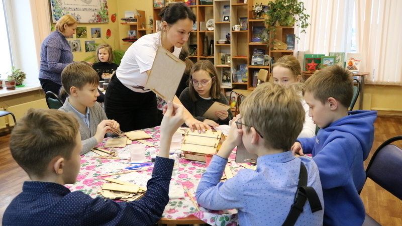 В этот раз школьники выступили не только в роли слушателей, но и стали активными участниками творческого занятия – ребята смастерили кормушку.