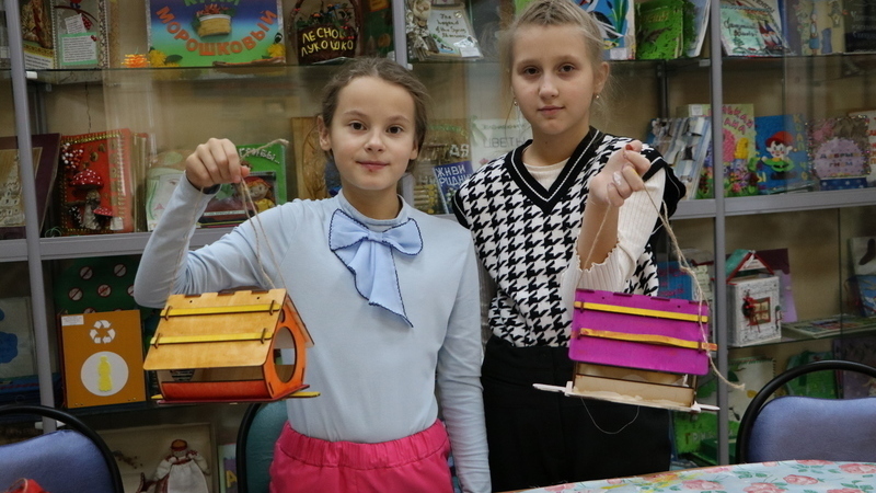 Библиотекари и специалист по просветительской работе Любовь Александровна Зозуля рассказали ребятам о том, как непросто птицам пережить зиму – с наступлением холодов им приходиться больше сил и энергии тратить на поиски пищи. Чтобы помочь пернатым перезимовать и не погибнуть от голода мы решили сделать для них кормушки.