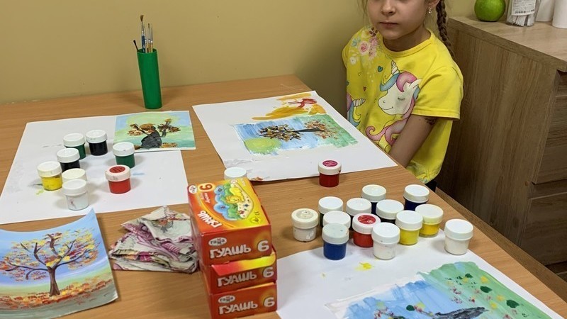 Занятие прошло в дружеской обстановке, девчонки и мальчишки с удовольствием и огромным интересом рисовали в новой технике правополушарного рисования. Вместе решили выбрать тему осени и нарисовали дерево с осенними листьями. Дети очень старались, и каждая из работ получилась яркой и неповторимой.