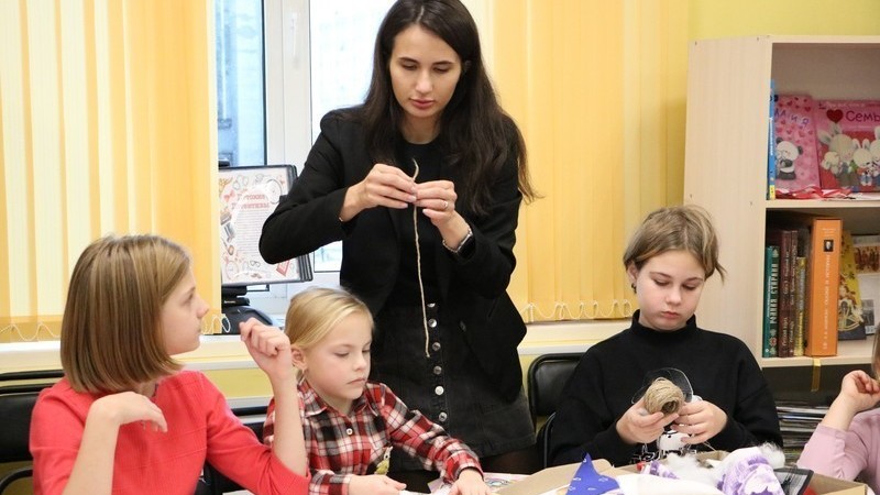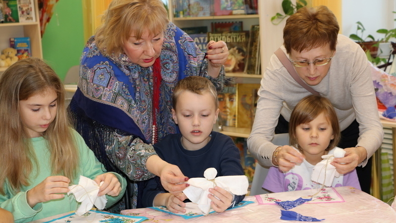 На предыдущей встрече ребята познакомились с удивительными куклами, которые создает для конкурсов красоты Варя Матвеева. А сегодня участники фестиваля попробовали свои силы в создании кукол. Прежде чем приступить к работе юные мастера совершили путешествие в мир славянских кукол-оберегов. Узнали все секреты рождения обережных игрушек: почему наши предки выбирали такие цвета, из каких материалов делались куклы- обереги, почему не имели лица. Послушали истории Деда кукловеда о куклах неразлучниках и кукле-желаннице. Прогулялись по комнатам русской избы, где особым оберегом считалась Баба-яга.