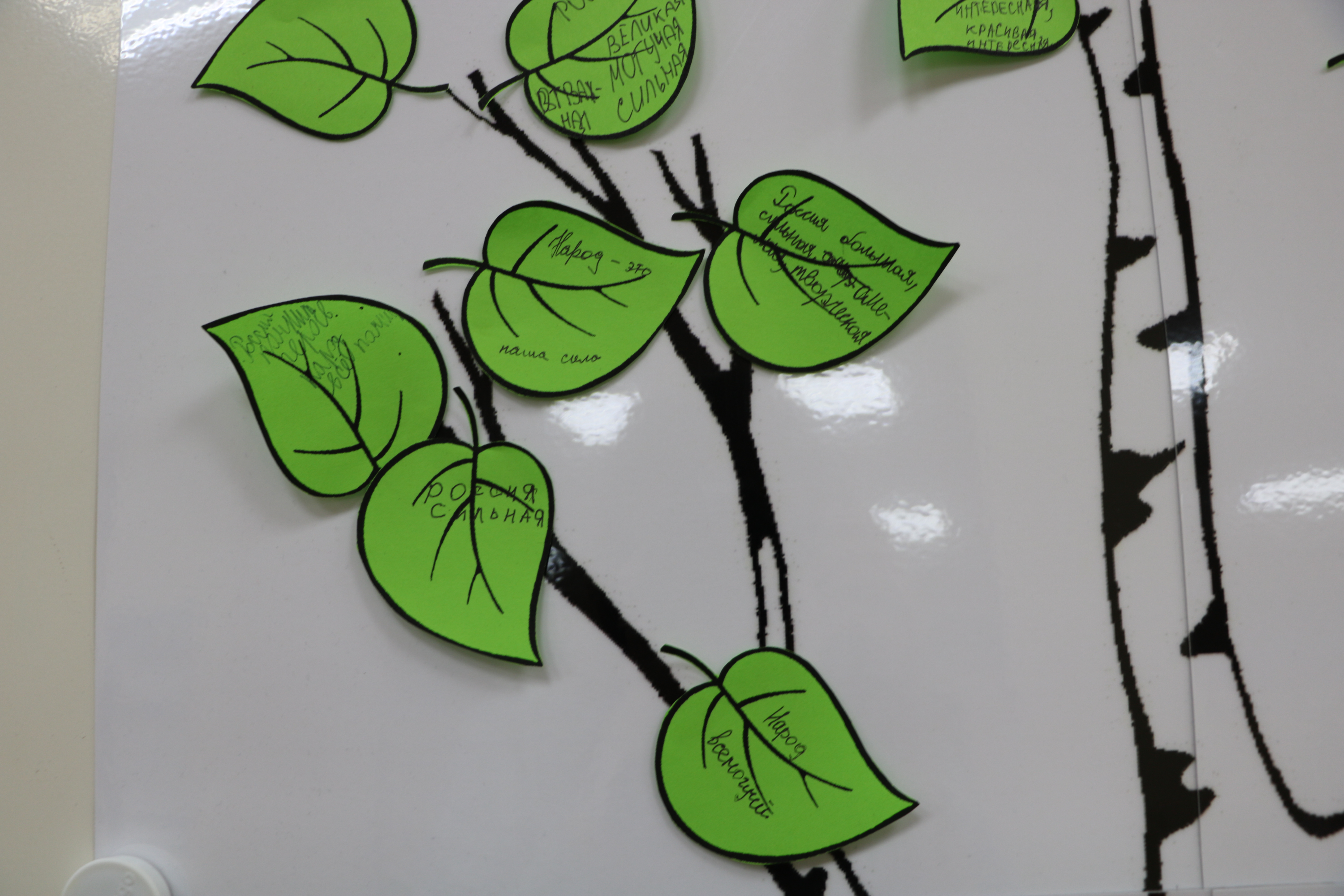 Чем гордится наша страна, чем она богата? Конечно же, главное богатство – это люди, которые в ней живут и искренне любят свою Родину! В конце мероприятия ребята украсили березку листочками с добрыми словами, посвященными России и ее народу.