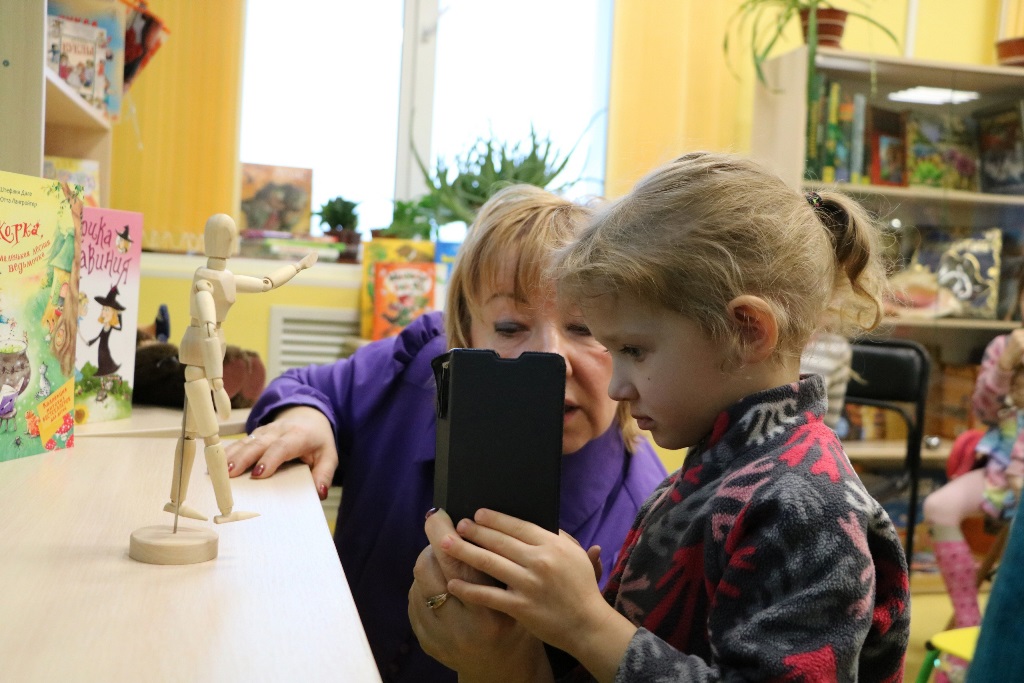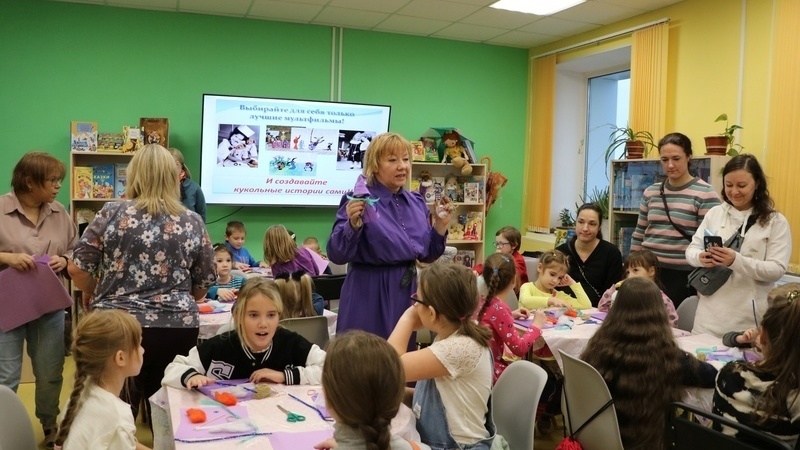 Ребята и их родители «отправились» в студию по созданию кукольной анимации. Юные любители игрушек узнали, что у кукол есть еще одна работа – быть актерем мультфильма. Ребята увидели как кукла попадает в мультфильм, кто придумывает ее образ, какие важные этапы проживает кукла от рождения до момента, когда ее увидит зритель.