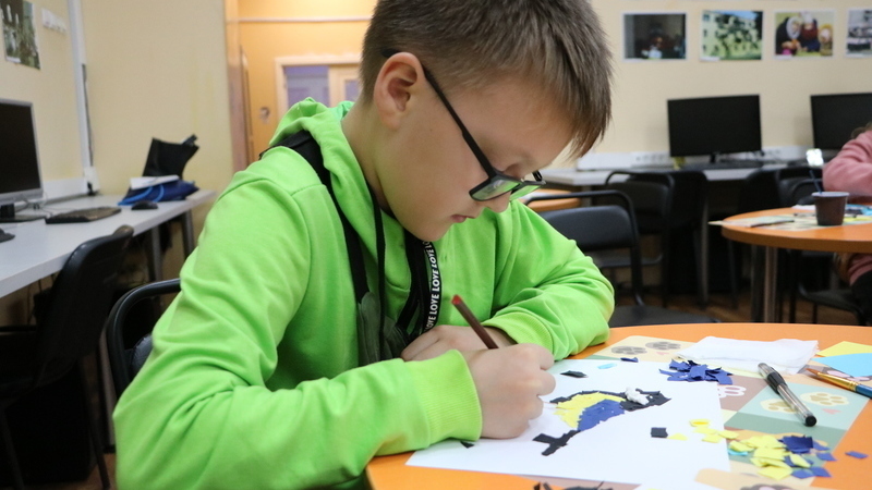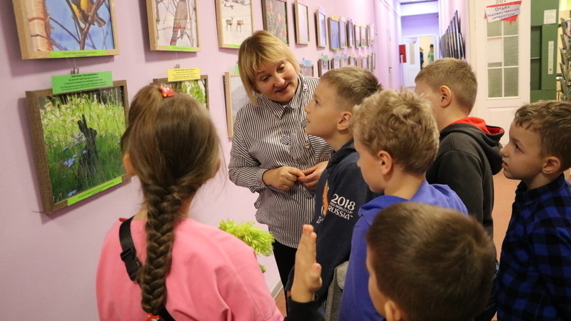 После творческого занятия заведующая центром краеведения и страноведения Людмила Григорьевна провела экскурсию по выставке «В объективе Лапландский заповедник», на одной из фотографий ребята также обнаружили хозяйку праздника – синичку.