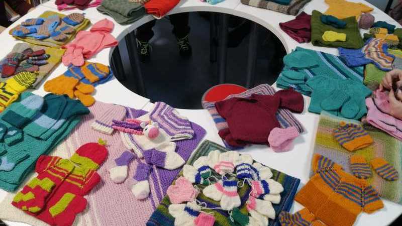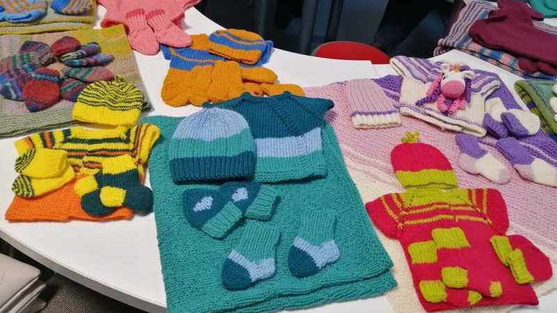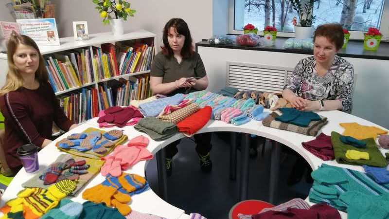 Вязальщицы клуба также приготовили носочки, более 30 пар варежек и манишки для детей из «Дома Малютки».