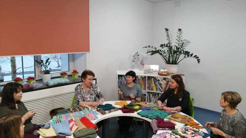 На встречу участницы клуба принесли пледы, жилетки, шапочки, носочки и варежки-антицарапки для малышей, связанные в рамках осеннего вязального марафона «Тепло для Торопыжек». Все это шерстяное богатство будет передано в Мурманский перинатальный центр.