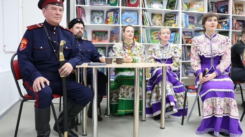 Гости встречи, ансамбль казачьей песни «Сиверка» Кольского станичного казачьего общества, поведали слушателям о вековой истории казачества, когда и откуда появился этот удалой народ на Крайнем Севере, как они жили в суровых условиях Заполярье и каков их сегодняшний быт в северных станицах. Немало интересного о славных народных обычаях и культурных традициях казаков узнали наши читатели, а свободный формат встречи позволил им задать интересующие вопросы. А еще ребята узнали об особом гутаре – разговоре казаков и попрактиковались в его переводе на привычный для нас язык, например, были такие слова: вечерять – ужинать, бачить –видеть, драбына –лестница.