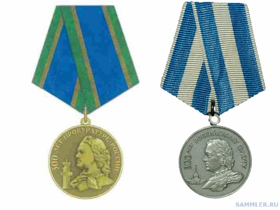 7. На лицевой стороне юбилейной Медали «300 лет прокуратуре России» имеется его рельефное профильное подгрудное изображение.