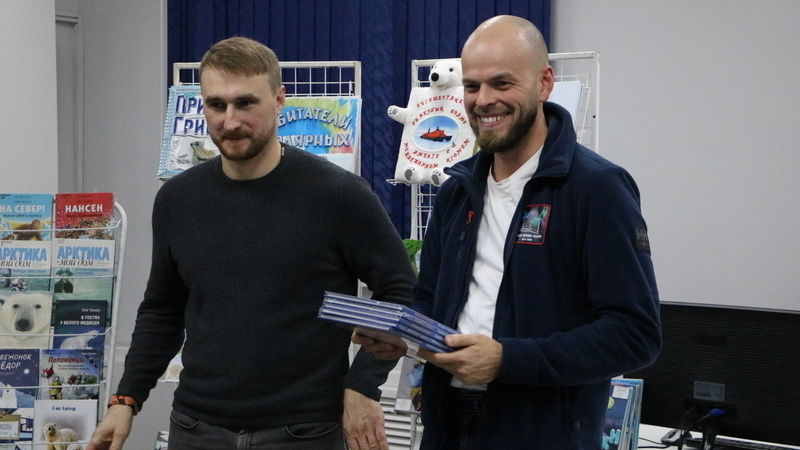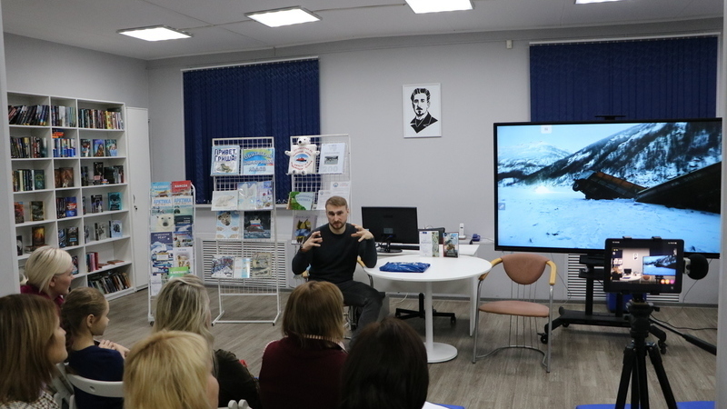 Вчера в рамках проекта «Необычный гость» в нашей библиотеке состоялась встреча сразу с двумя гостями. Богдан Булычев – профессиональный путешественник, исследователь Арктики, видеоблогер, член русского географического общества и Ассоциации полярников, режиссер и продюсер. Он стал первым в мире человеком, добравшимся до географического Северного полюса на велосипеде, вместе со своей командой на неподготовленных автомобилях достиг самого северного континентального населенного пункта в мире – поселка Диксон и совершил еще множество уникальных экспедиций, о которых рассказал на встрече. В 2018 году Богдан победил в номинации «Лучший блогер» в первой интернет-премии «Кубок мэра Москвы». На ютьюб-канале Богдана «Про путешествия» более 600 000 подписчиков. Особый интерес присутствующих вызвали экспедиции Богдана на Северный полюс. И это не случайно. Ведь именно такие путешествия сопровождаются пребыванием в экстремальных условиях: низкая температура воздуха, шквальный ветер, магнитные аномалии, высокая влажность и нехватка кислорода. Еще один интересный факт: на Северном полюсе сходятся все меридианы, и пересечь их можно за минуты. Спикер раскрыл гостям встречи секреты омоложения в Арктике и способы соблюдения гигиены в экспедиции, рассказал истории о встрече с белым медведем и поделился впечатлениями о традиционных блюдах коренных народов Севера. Главный посыл встречи – любовь к своему родному краю, желание увидеть его глазами путешественника, исследователя и первооткрывателя.