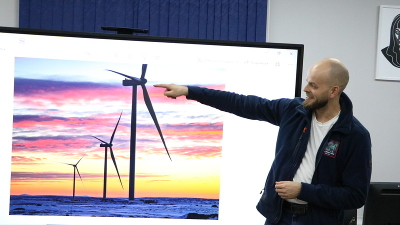 Второй участник – Вадим Уланов – представитель компании «Энел Россия» в Мурманской области. Человек, который знает все об уникальном объекте нашей области – Кольском ветропарке. Можно ли сравнить строительство такого объекта с экспедициями в Арктику? Каким образом доставлялись лопасти ветряков до площадки ветропарка? Повлияло ли строительство на обитателей тундры? Об этих и других фактах с неподдельным интересом узнали присутствующие. Цифры внушительные. Мощность Кольской ВЭС составляет 200,97 МВт. Ветропарк сможет вырабатывать порядка 750 ГВтч в год, избегая при этом выброса около 585 тыс. тонн углекислого газа в атмосферу.