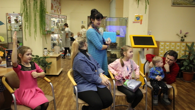 Здесь родители вместе детьми с удовольствием отвечали на серьёзные и шуточные вопросы о сказочных и вполне реальных мамах, об их профессиях, увлечениях. Азартно угадывали фрагменты из музыкальных произведений и анимационных фильмов, успешно расшифровали секретное послание для всех мам, написали его на бумажных сердечках и подарили своим мамам.