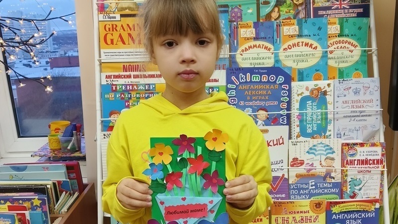 Так хочется сделать что-то особенное для любимых мам в их «профессиональный» день. В зале литературы на иностранных языках юные читатели под руководством библиотекаря подготовили замечательную открытку, выполненную в технике оригами.