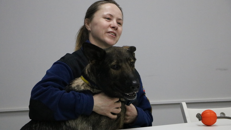 Бондарь Ирина Анатольевна, спасатель поисково-спасательного подразделения «Мурманск» Мурманского арктического комплексного аварийно-спасательного центра МЧС России познакомила собравшихся с профессией кинолога и рассказала о работе с верным другом и помощником по кличке Морошка.