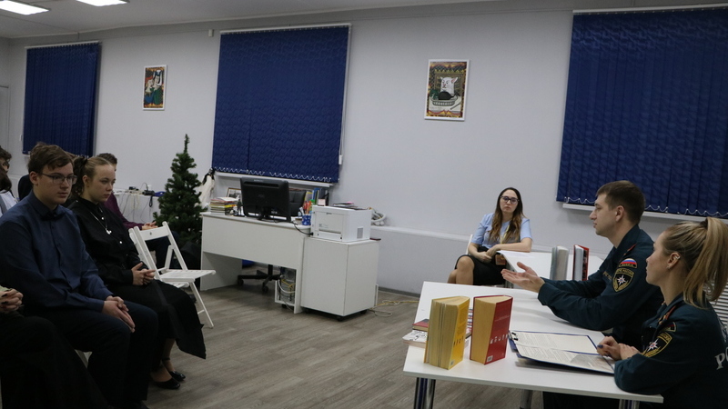 Капитанова Анастасия Сергеевна, старший инспектор кадрового подразделения Главного управления, объяснила ребятам, в какие ВУЗы России можно поступить, чтобы работать в МЧС.