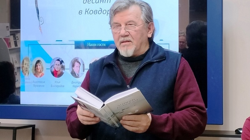 Олег Дроздов познакомил читателей с книгами, вышедшими в издательстве «Дроздов-на-Мурмане» благодаря гранту Губернатора Мурманской области: повестью «Таисия» Александра Рыжова, «На севере страны взрослели пацаны» В. Сидорина, а также «Сказки Беломорья» Вадима Александровича Сурядова на родном поморском языке.