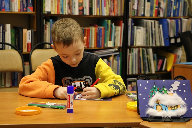 В центре краеведения и страноведения все желающие делали рождественскую открытку из картона, цветной бумаги, ваты и различных декоративных украшений.