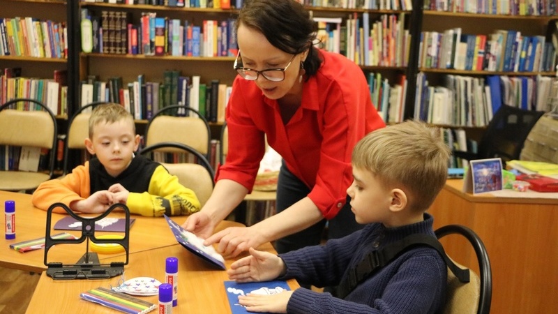 В отделе художественной литературы ребята создавали нежных ангелов из воздушной тафты, блестящих лент и ярких ёлочных шаров.
