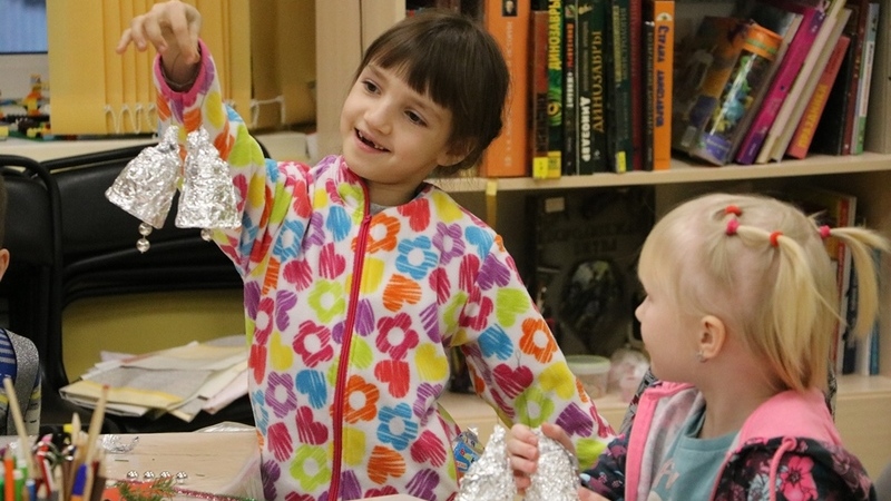 Все вместе сделали рождественскую звезду из цветной бумаги, а из фольги и пластиковых стаканчиков замечательные рождественские колокольчики! Наполненные святочным теплом, с удовольствием уплетая наколядованные сладости, ребятишки разошлись по домам поздравлять родных и знакомых с волшебными днями. Весёлых святок вам, друзья!