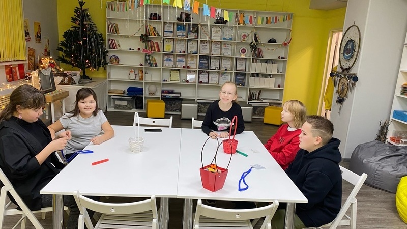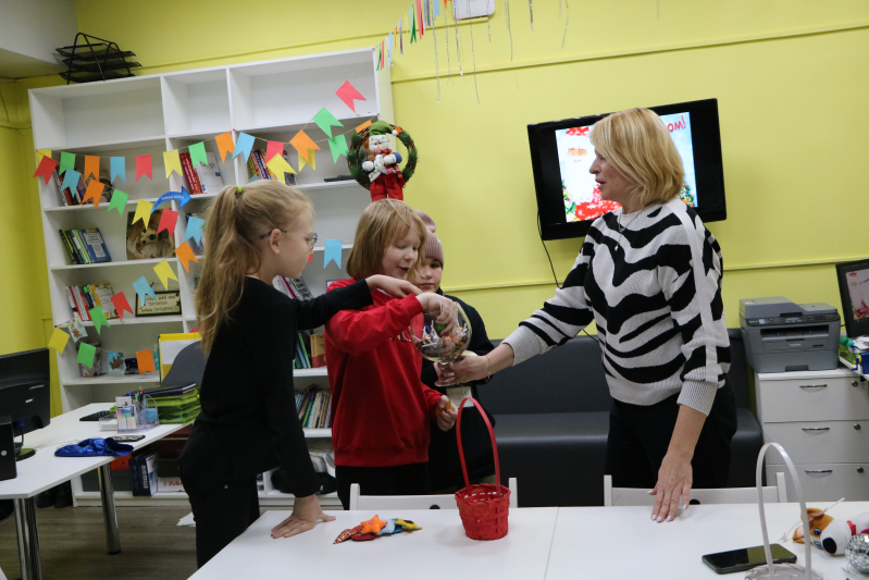 Команды вспоминали литературных героев, сказочных персонажей, праздничные приметы, старинные поверья и рецепты новогодних салатов. Ребята по очереди «готовили» салат оливье из различных компонентов, куда кроме колбасы и горошка вошли также «доброта», «любовь» и «мастерство».