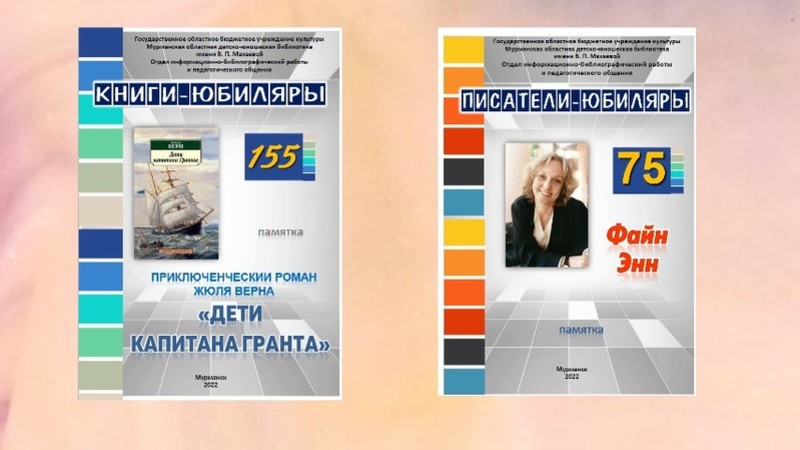 Вторая памятка стала очередным изданием в серии «Книги-юбиляры», и посвящена она 155-летнему юбилею приключенческого романа Жюля Верна «Дети капитана Гранта». В памятке предлагается информация о биографии и творчестве французского писателя, классика приключенческой литературы, одного из основоположников жанра научной фантастики, об истории создания и издания романа, о фильмах-экранизациях, характеризуется его сюжет и главные персонажи. В библиографической части памятки: список литературы о творчестве Жюля Верна и список материалов в помощь учителю и библиотекарю.