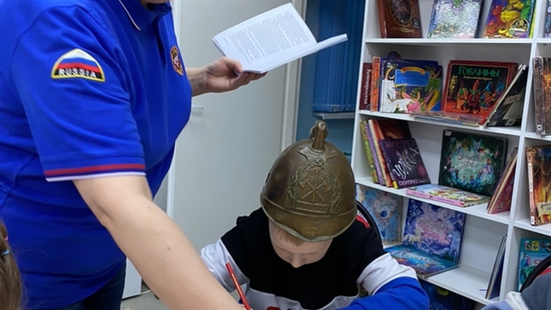 Участники мероприятия увидели редкий музейный экспонат – советскую пожарную каску образца 1923 года, которая вдохновила автора на написание этой сказочной истории. Затем ребята раскрасили рисунки из книжки-раскраски.